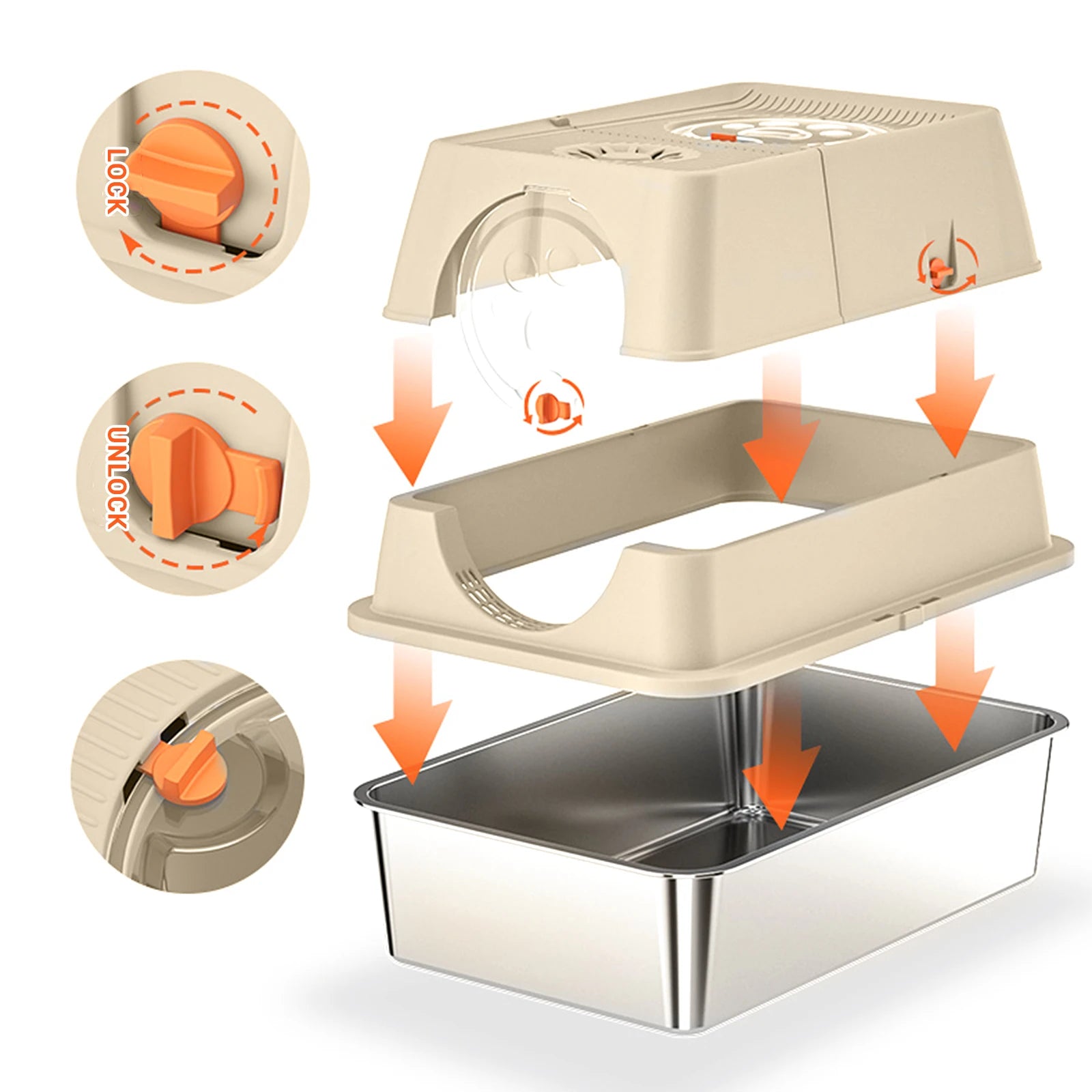 Applicable combination: The detachable top plastic cover can be used as a 2-in-1 cat litter box