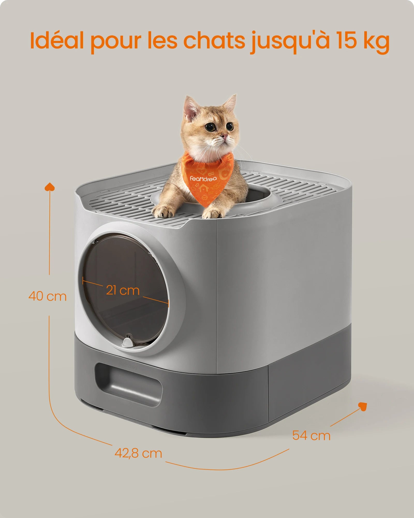 Dites adieu aux projections et odeurs grâce à ce bac à litière fermé Feandrea.