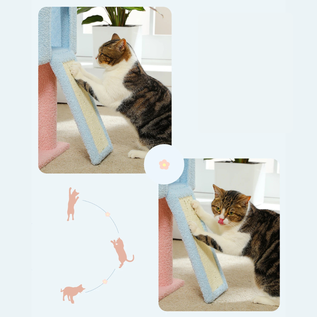 - Rampe inclinée et griffoir 2-en-1 : parfait pour chatons, seniors ou chats à mobilité réduite.