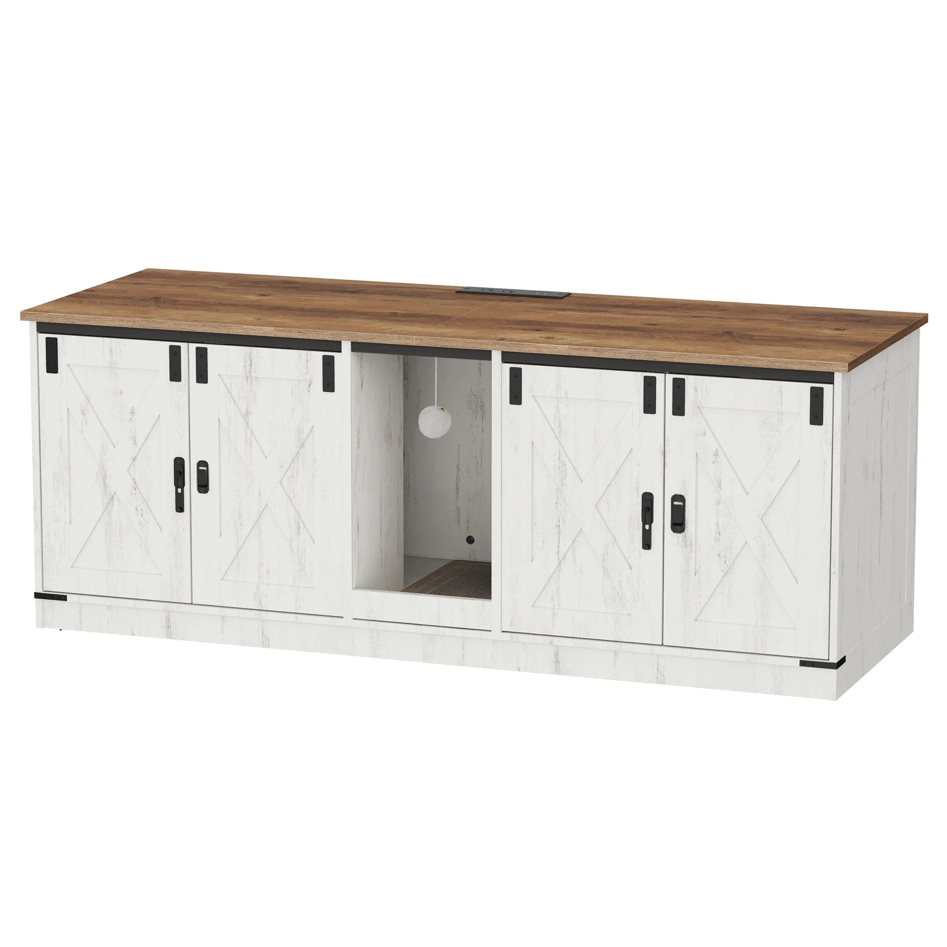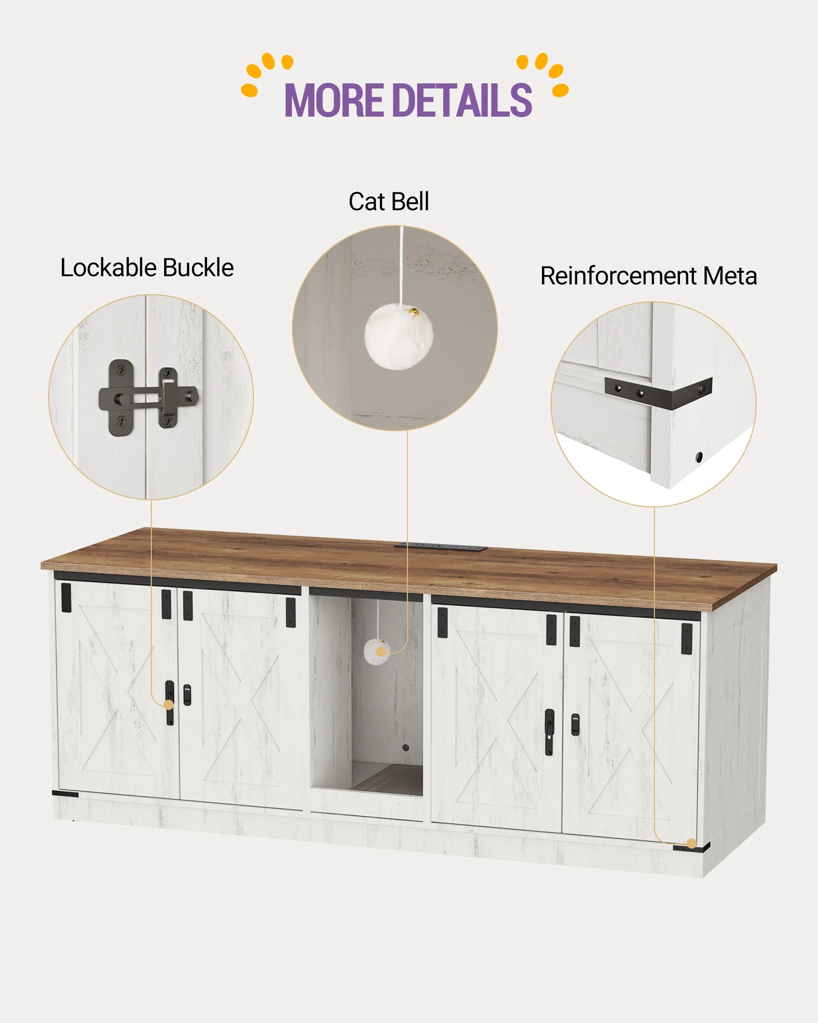 THE PERFECT MIX OF FAMILY This rustic and unique barn door shaped cat litter box cabinet can be used as a cat litter box or a finished cat house, providing your cat with a comfortable home