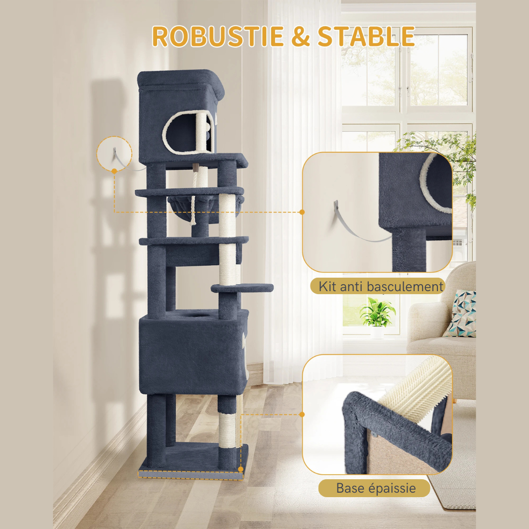 - Hauteur impressionnante : 178 cm, conçue pour les félins grimpeurs et curieux.