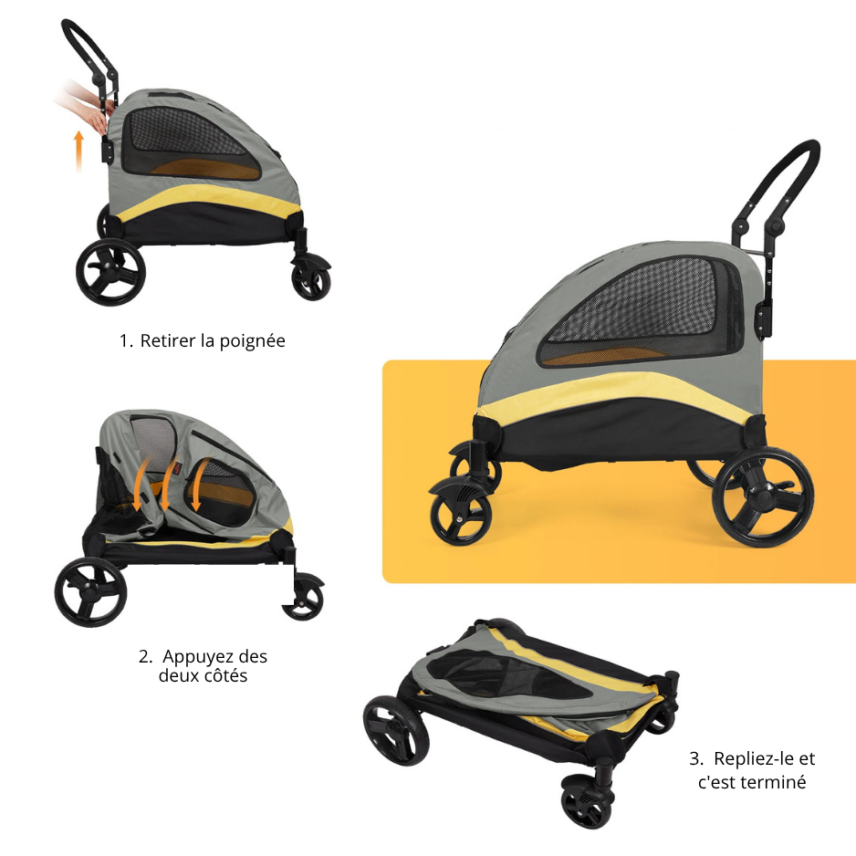 Offrez à votre chien ou chat une balade confortable et sécurisée avec ce poussette pour animaux polyvalente. Idéale pour chiens de moyenne à grande taille, chats ou animaux à mobilité réduite, elle allie confort, sécurité et praticité.