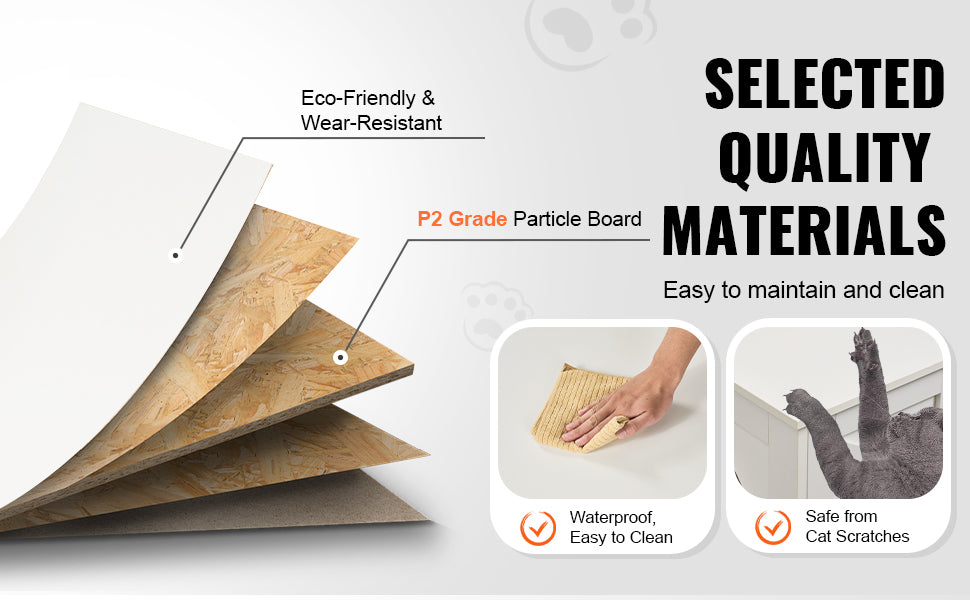 Premium Materials: The P2 grade particle board ensures the health and safety of pets and your whole family. The high-quality finish surface with smooth edges is waterproof, easy to clean and maintain, wear-resistant and damage-resistant, and not afraid of cat scratching. The board is pre-drilled and numbered for your convenience.